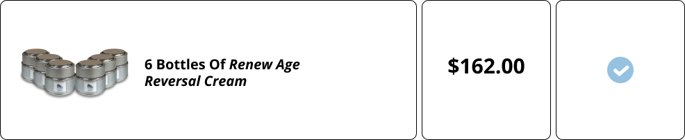 Renew - Age Reversal Cream uniquely works with your skin to naturally enhance your appearance while also benefiting your skin's overall health and texture. For a limited time only when you click the button below you'll also receive 6 of my BEST and most popular bonus products for FREE! That's over $500 in savings but you have to act fast! Remember you're covered by my 60 day 100% money back guarantee! Don't risk missing these 6 FREE bonuses and click the button below now!