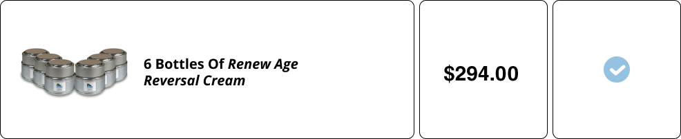 Renew - Age Reversal Cream uniquely works with your skin to naturally enhance your appearance while also benefiting your skin's overall health and texture. For a limited time only when you click the button below you'll also receive 6 of my BEST and most popular bonus products for FREE! That's over $500 in savings but you have to act fast! Remember you're covered by my 60 day 100% money back guarantee! Don't risk missing these 6 FREE bonuses and click the button below now!